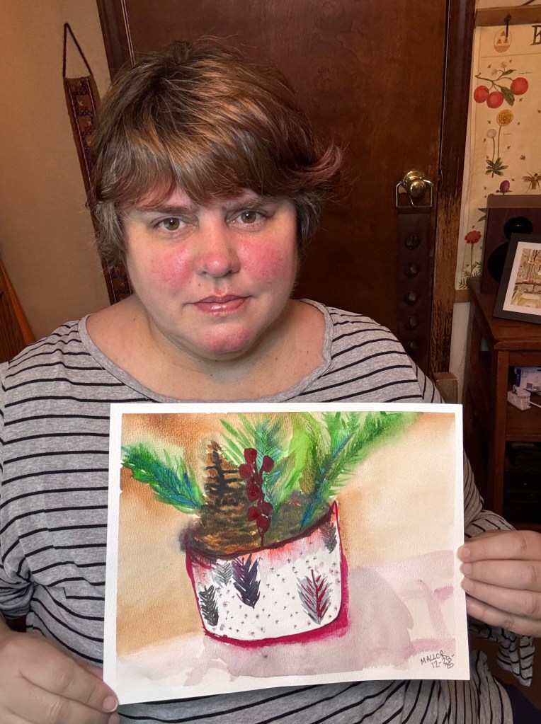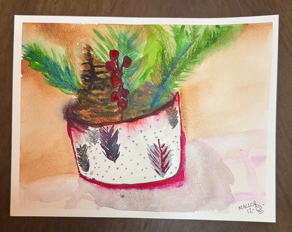 This first video below is of the first painting I worked on today, titled “A Christmas Gift.” It was of a potted faux plant for my mother from her great grandsons.