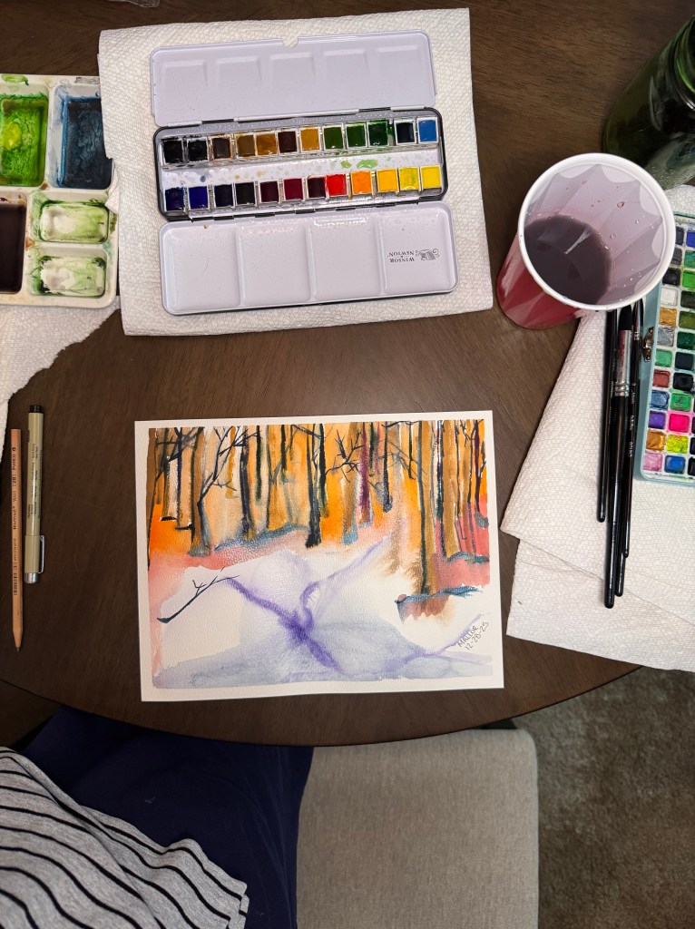 I made two paintings today, both 9”x12,” with a combination of Daniel Smith watercolors, Winsor & Newton Watercolors, and Artistro watercolor paints. There is a massive difference in price between the them, but I enjoy using them in combo, and I am a fan of the fluorescent and metallic colors included in my Artistro set.